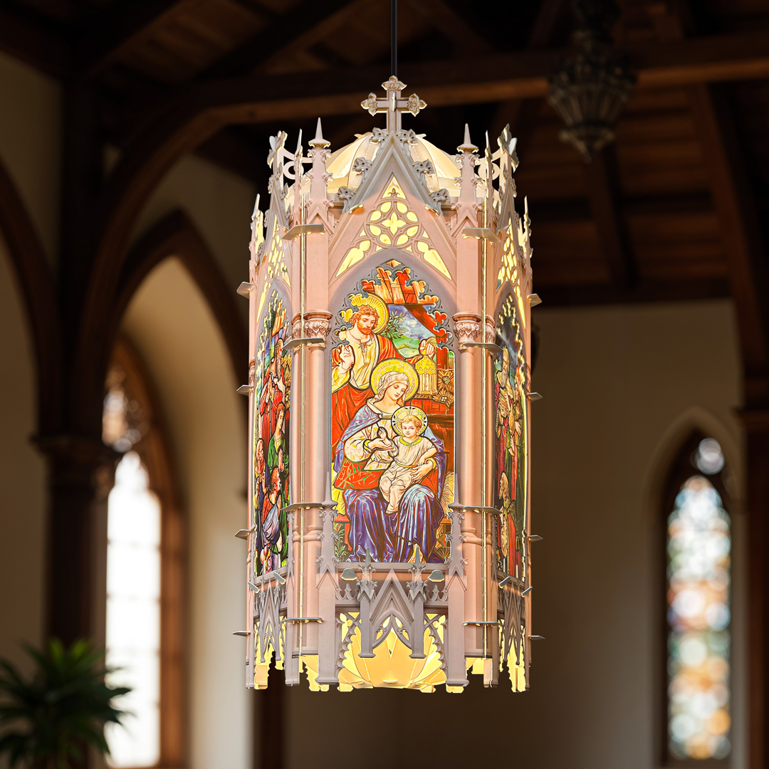 Mẫu lồng đèn lục giác "signature" của TAYTA nay được cải tiến hơn với chất liệu nhựa pp cao cấp, bền bỉ, có thể sử dụng cả ngoài trời lẫn khu vực trong nhà. Màu trắng chủ đạo làm nổi bật hình ảnh Thánh Gia đẹp rực rỡ sẽ là lựa chọn tuyệt vời cho mọi không gian để chào đón một mùa Giáng Sinh an lành, ấm cúng.
