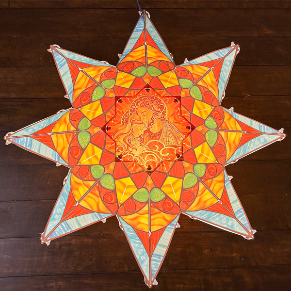 - Kích thước lồng đèn: 74cm x 74cm, gồm 16 cánh lồng đèn và các mảnh ghép nối đi kèm.