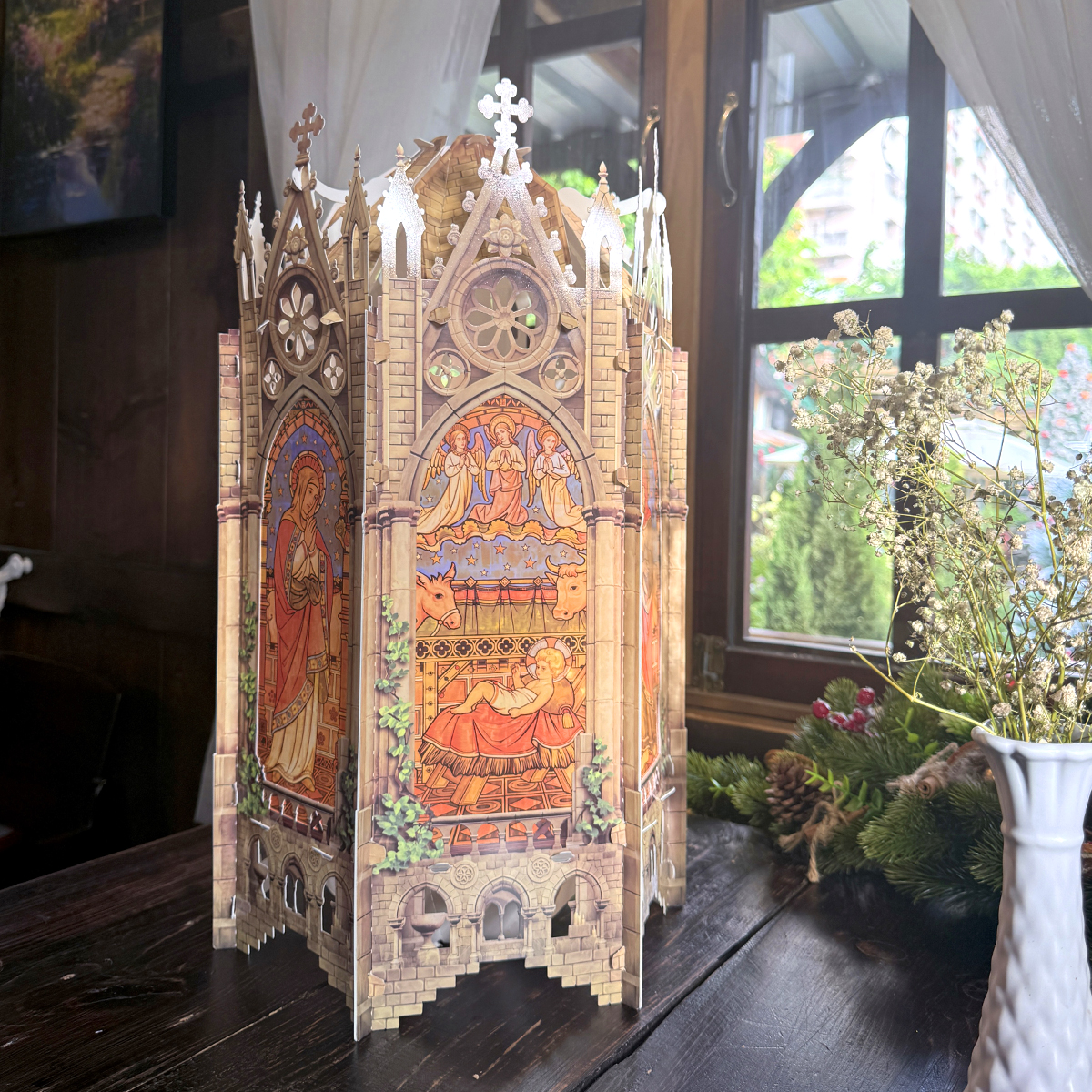Tiếp tục với xu hướng trang trí Giáng Sinh theo phong cách cổ điển, sang trọng, TAYTA ra mắt mẫu Lồng Đèn Lục Giác Stone với họa tiết nền đá ấn tượng, góp phần làm nổi bật hình ảnh các bức tranh ý nghĩa trên lồng đèn.