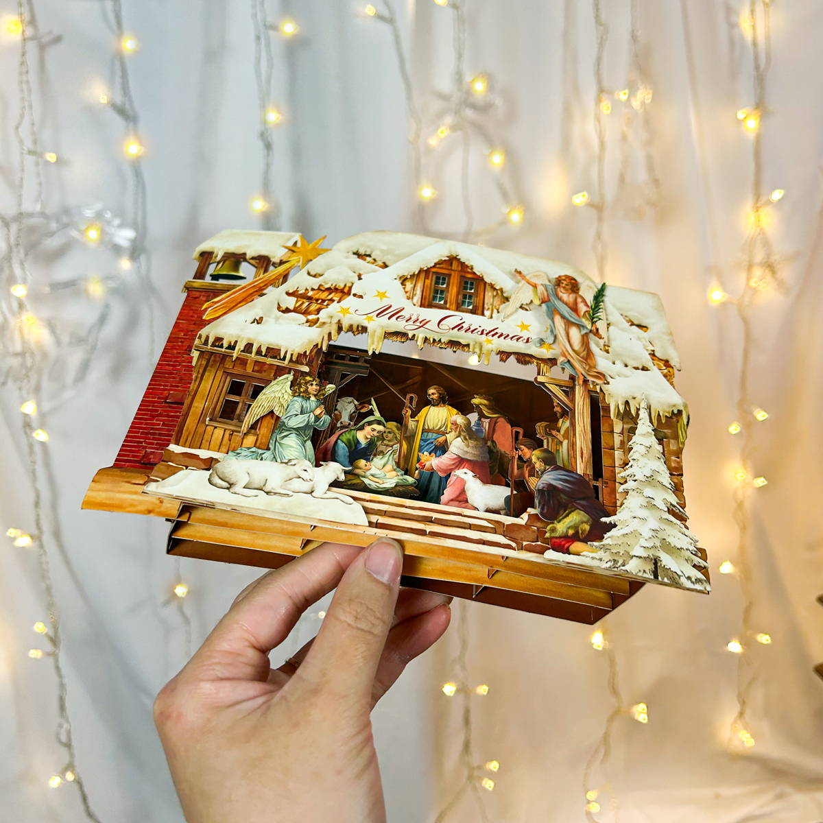 - Chất liệu: giấy cao cấp in màu kỹ thuật số, cắt laser sắc nét.