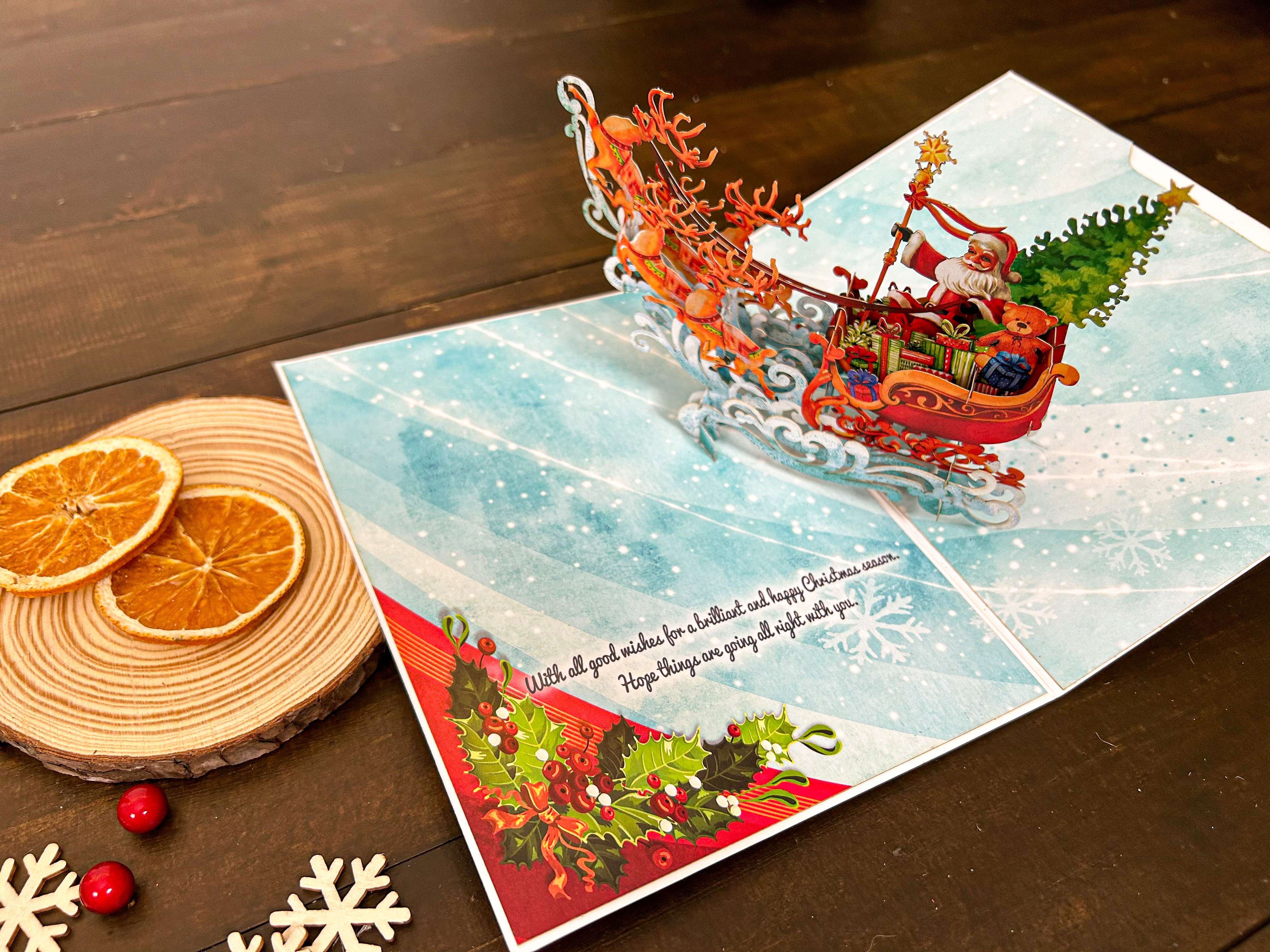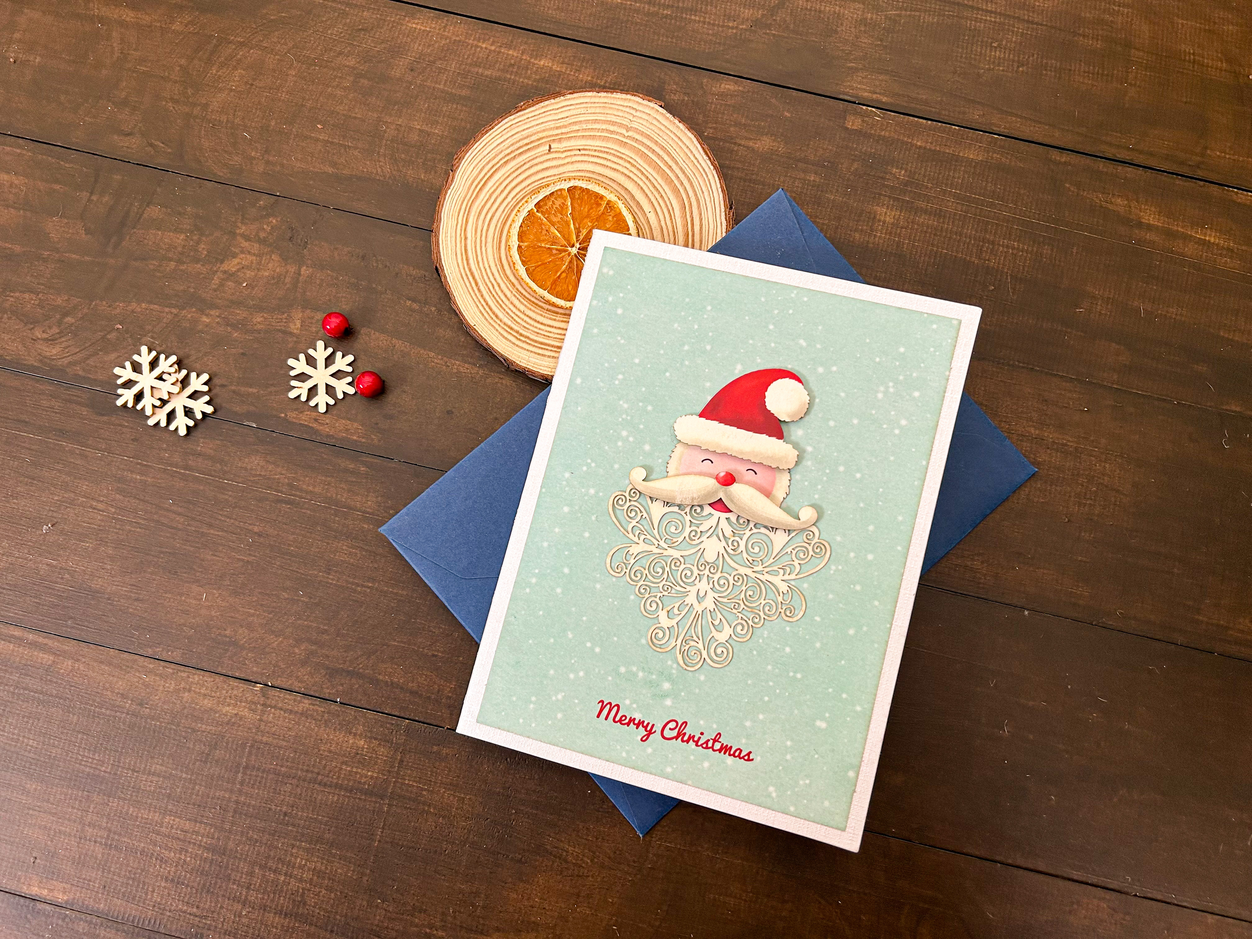 Ảnh: Thiệp 3D Ông Già Noel phối set chỉn chu, kích thước 15cm x 20cm, với mô hình 3D cầu kỳ