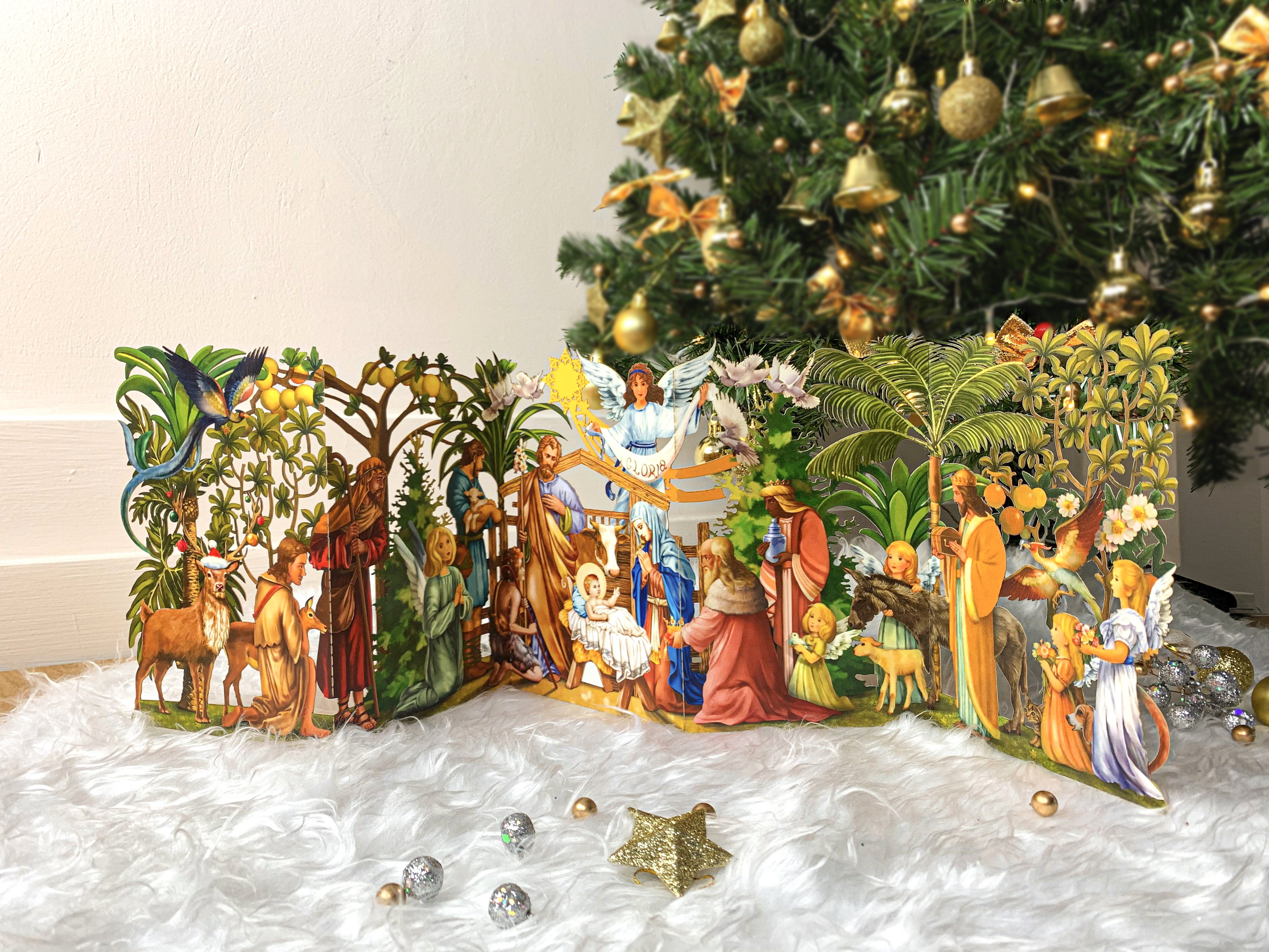 - Chất liệu: giấy cao cấp in màu kỹ thuật số, cắt laser.